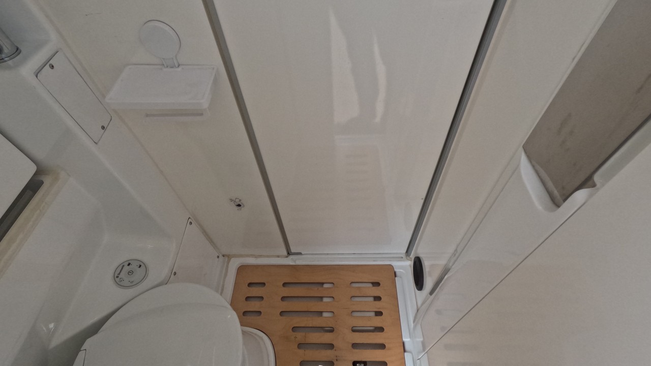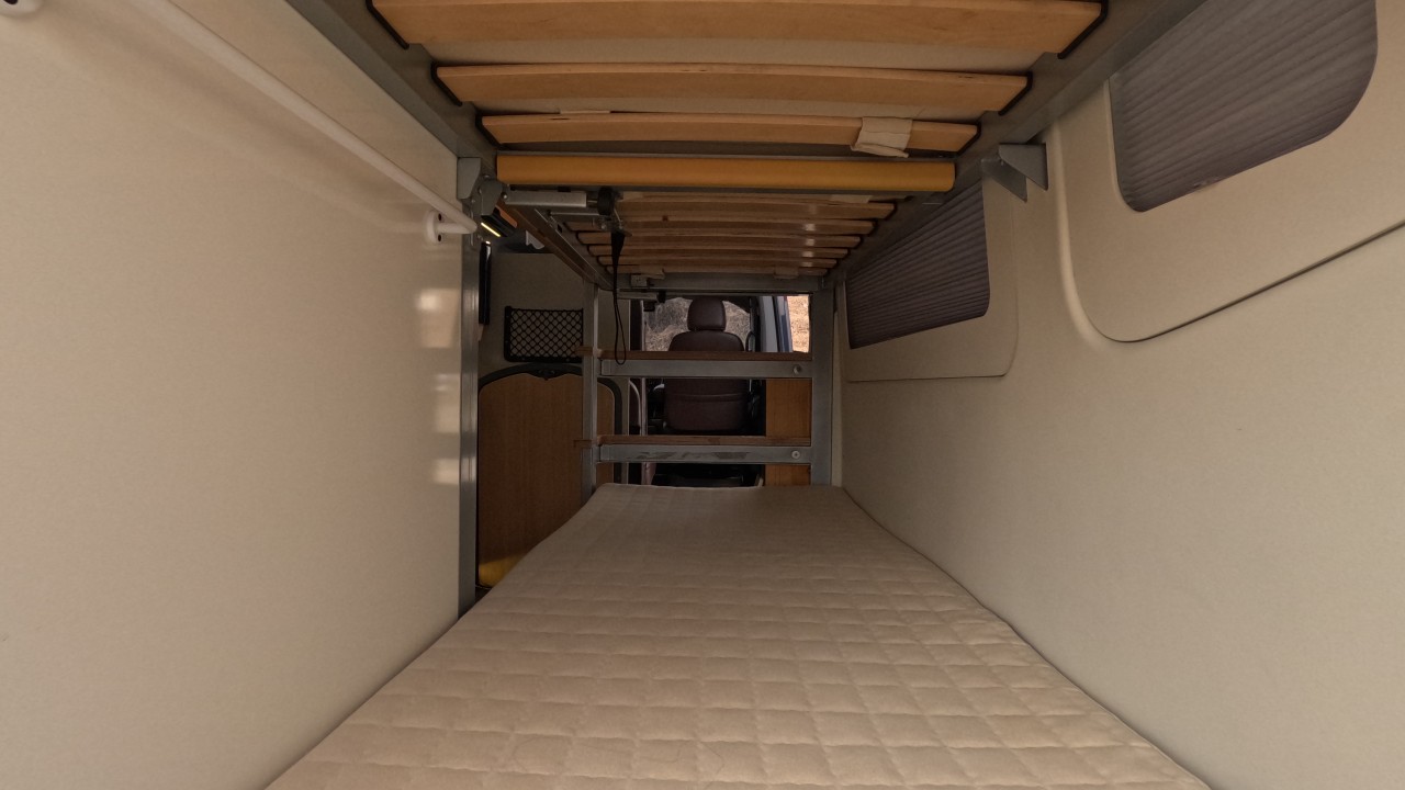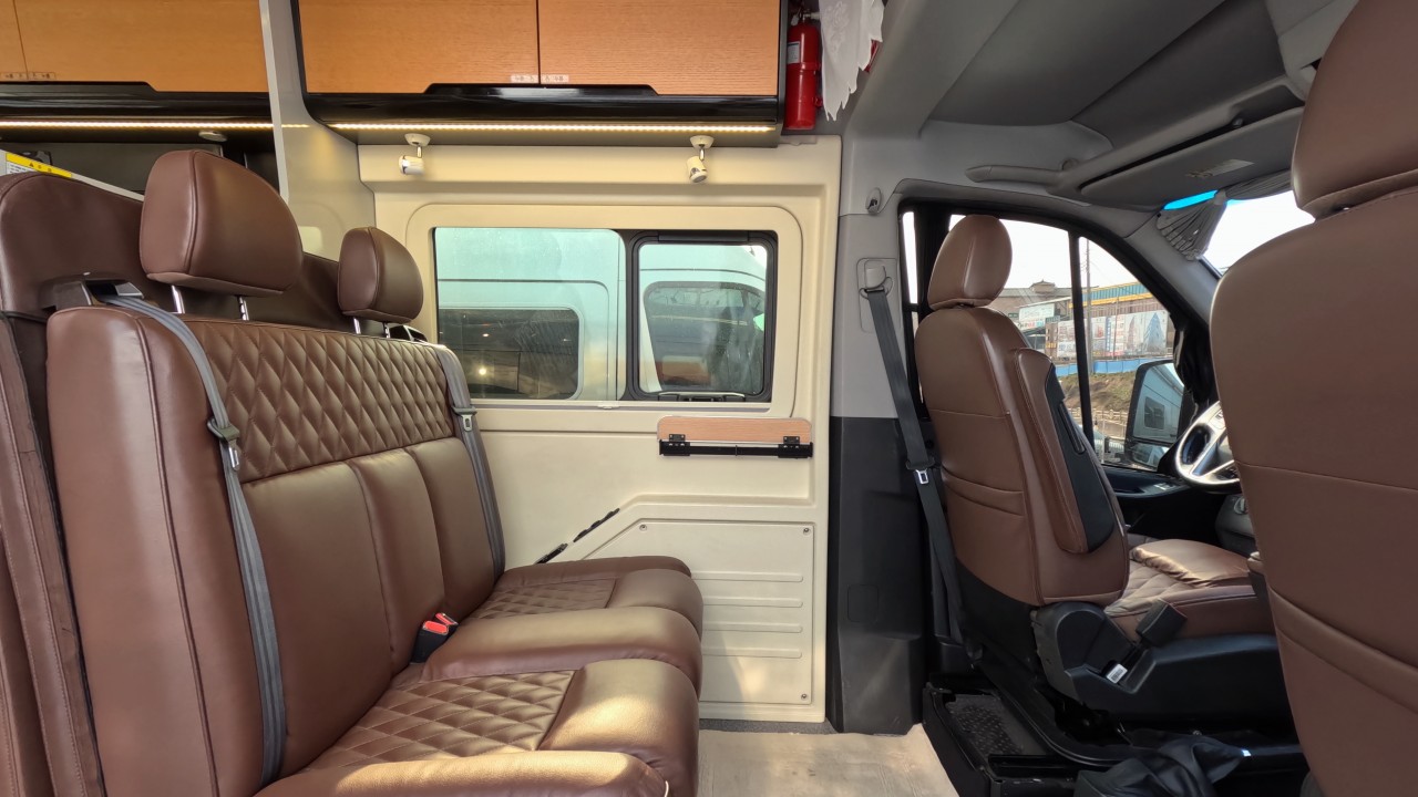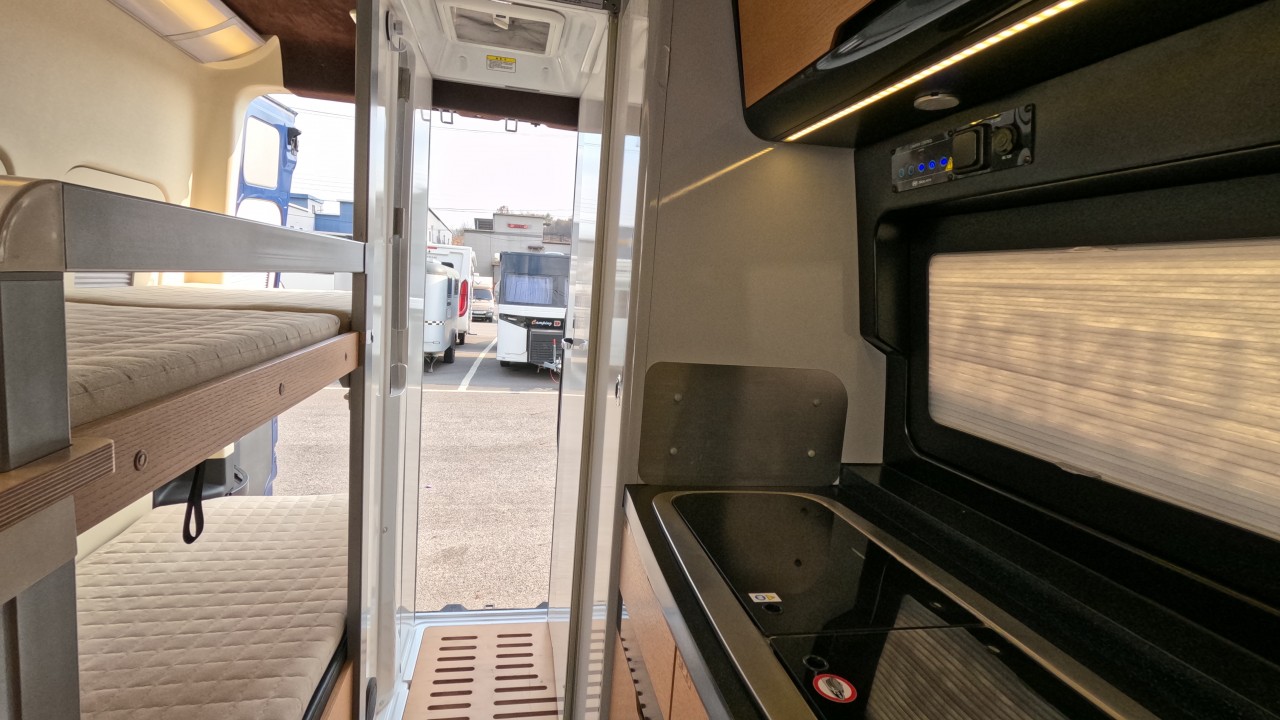내부 : 천장형에어컨, 에바스D2, 냉장고, 2구가스렌지, 개수대, 청수76L, 오수95L, 욕실, 고정식변기, 환기팬, 2층침대, 1열/2열회전시트