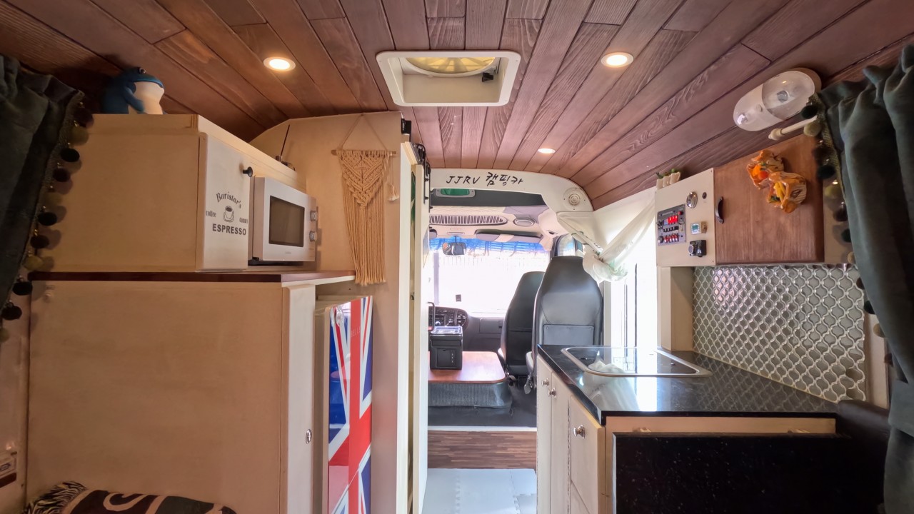 내부 : 무시동히터5K, 벽걸이에어컨, TV, 냉장고107L, 전자렌지, 개수대, 청수150L, 오수100L, 욕실, 맥스팬, 전기온수기